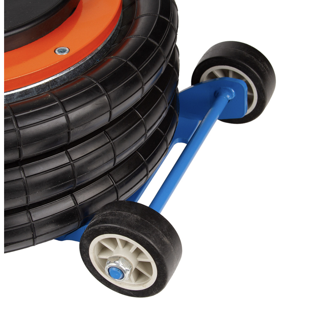 Løfteren er konstrueret med fokus på holdbarhed og brugervenlighed. Den solide håndtag er udstyret med et skridsikkert greb i riflet gummi, som giver god kontrol under manøvrering. De ekstra robuste hjul gør det nemt at flytte løfteren og placere den korrekt under køretøjet, selv på værkstedsgulve med ujævnheder. Konstruktionen er velegnet til professionel anvendelse i autoværksteder, dækcentre og andre miljøer, hvor der stilles høje krav til løfteudstyr.