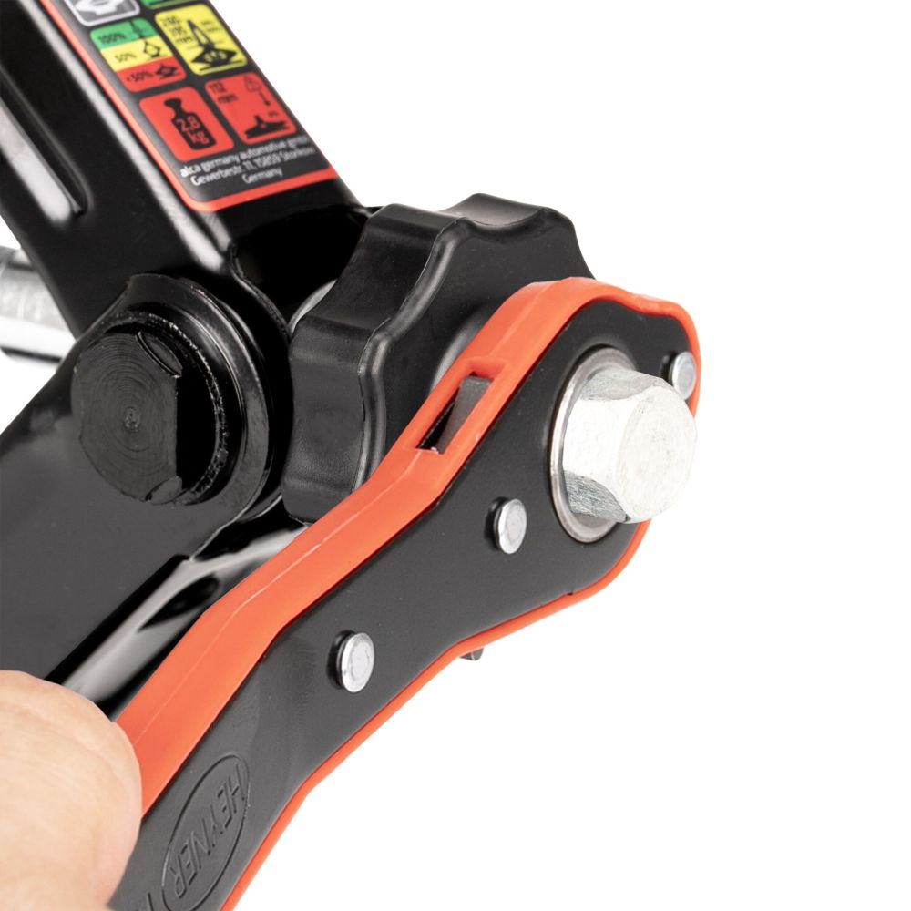 For nem betjening er donkraften udstyret med en praktisk drejeknap samt en komfortforlænger inkl. 17 mm skraldenøgle. Den kan desuden anvendes med en 17 mm topnøgle. Donkraften er TÜV Rheinland-certificeret (ID: 1111305153) og GS-godkendt. Den særligt robuste konstruktion sikrer pålidelig funktion selv ved temperaturer ned til -50 °C. Der medfølger en praktisk opbevaringstaske. HEYNER® MultiLift M Black står for fremragende stabilitet og høj brugervenlighed.