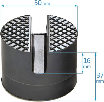 Praktisk massiv gummiklods til at ligge på donkraftens løfteflade for nemmere at kunne nå op til anlægsfladen bagved og for at beskytte bilens bund. Mål 50x37 mm. Meget robust gummiklods som en perfekt beskyttelse af bilens karosseri og køretøj, forhindrer skader på sideskørterne, sikrer højere stabilitet, kan hurtigt og nemt placeres på løftehovedet.