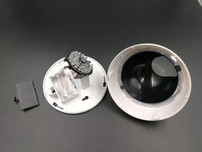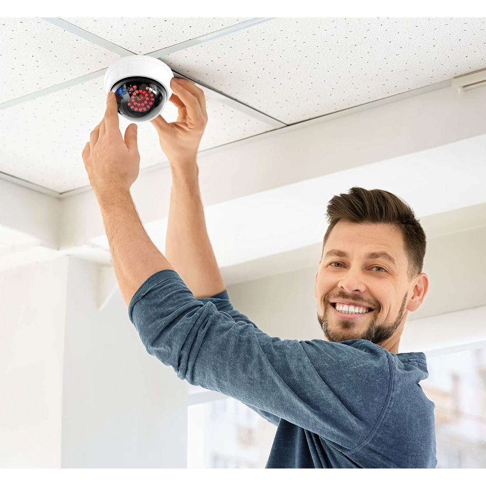 Perfekt dummy kamera til, at afskrække tyveri og hærværk i hjemmet. Dette dummy kamera har samme størrelse og et utroligt realistisk design som et ægte overvågningskamera. Kameraet er udstyret med 25 røde LEDer og en fotosensor, som vil skræmme tyve væk. Dummy kameraet kan benyttes både udenfor og indenfor. Kameraet kan justeres helt op til 360 grader. Nem montering uden ledninger.