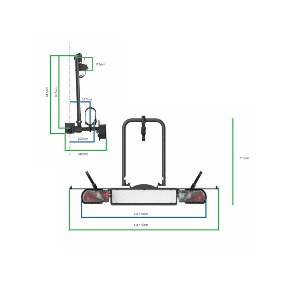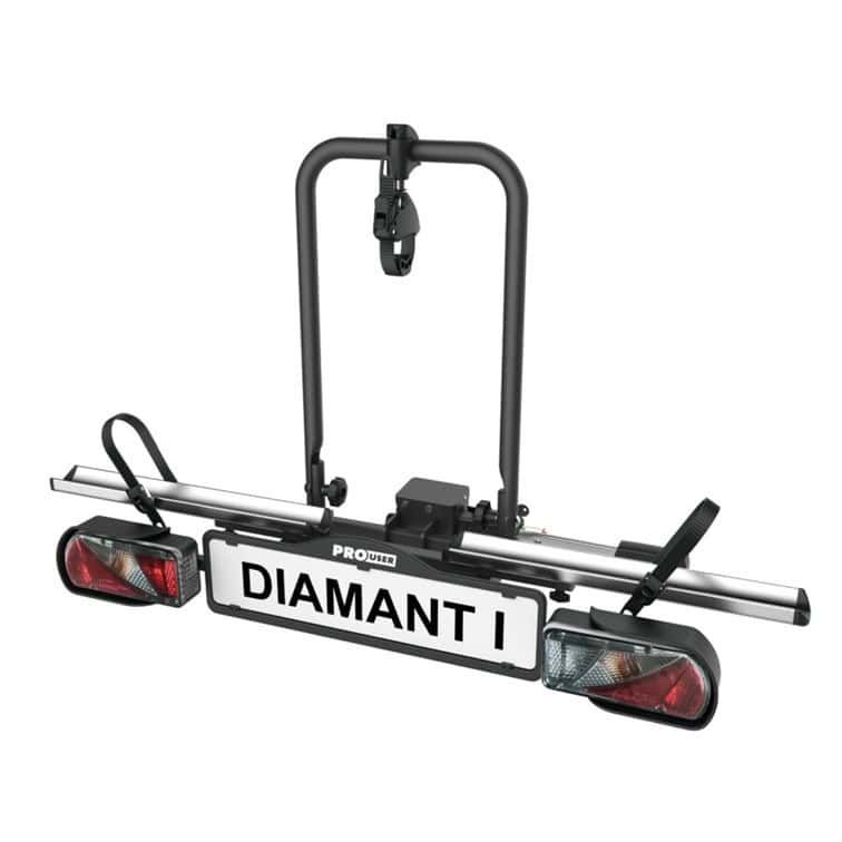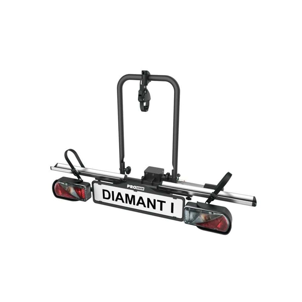 PRO-USER DIAMANT I DK er en elegant og kompromisløs cykelholder til dig, der vil have kvalitet i topklasse. Den er designet til én cykel og fylder kun 30 cm bagud fra bilens trækkugles centrum, hvilket giver et kompakt og stilrent udtryk – perfekt til både hverdagsbrug og ferier. Cykelholderen er godkendt til at bære en tung elcykel på op til 30 kg og giver dig dermed maksimal fleksibilitet. Monteringen klares på få sekunder helt uden værktøj takket være den patenterede monteringsarm, som sikrer en stabil og solid fastgørelse på bilens trækkrog.