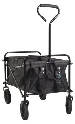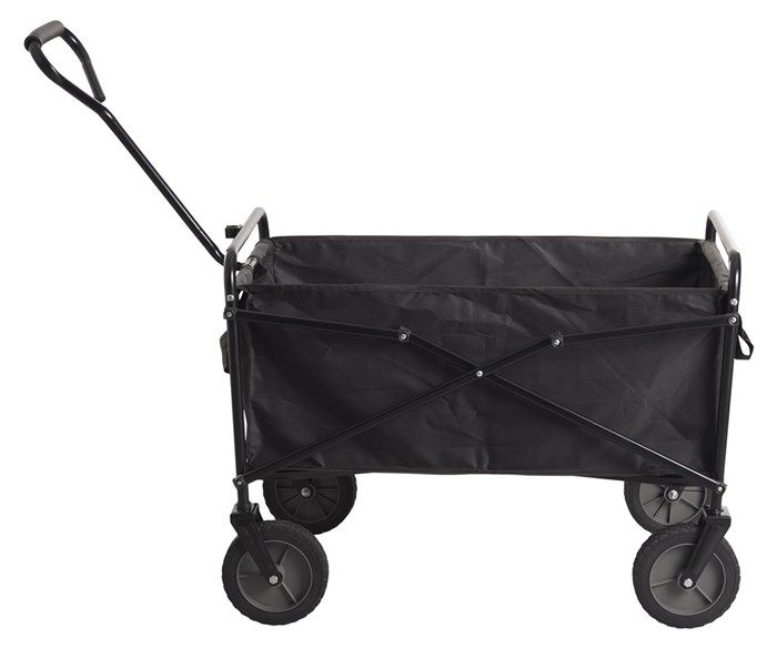 Med denne foldbare transportvogn behøver du ikke længere bekymre dig om, hvordan du transporterer alle tingene fra bilen, til stranden eller fra bilen og ind i skoven. Den sammenklappelige transport vogn byder på masser af opbevaringplads til transport af div. ting, og derved sparer dig for at skulle bære rundt på tasker, køleboks, indkøbsnet, flasker m.m.