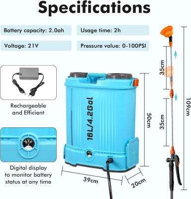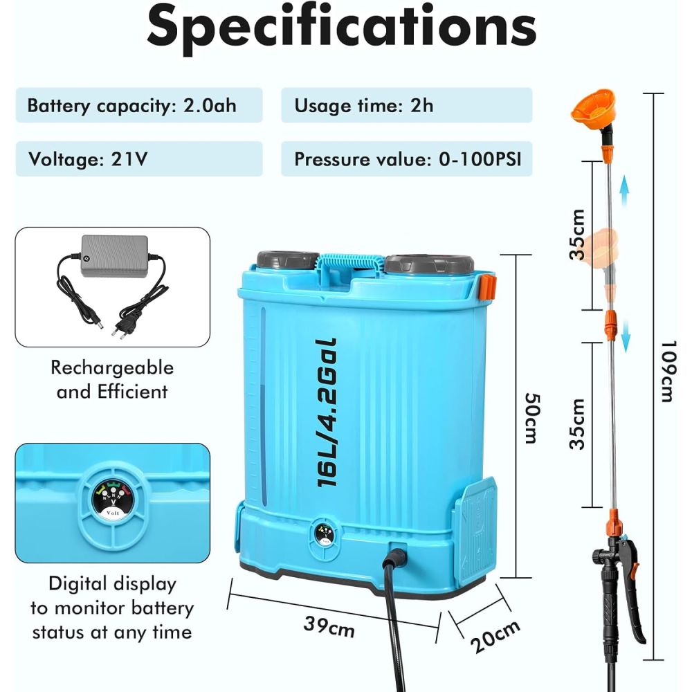 Gør havearbejdet hurtigere og nemmere med denne kraftige batteridrevne tryksprøjte. Den er kompatibel med 18V-batterier og arbejder op til 3-4 gange hurtigere end en manuel sprøjte. Med et tryk på op til 100 PSI og en sprøjterækkevidde på over 7,5 meter er den ideel til ukrudtsbekæmpelse, gødning, rengøring og andre sprøjteopgaver i haven.
