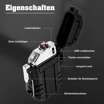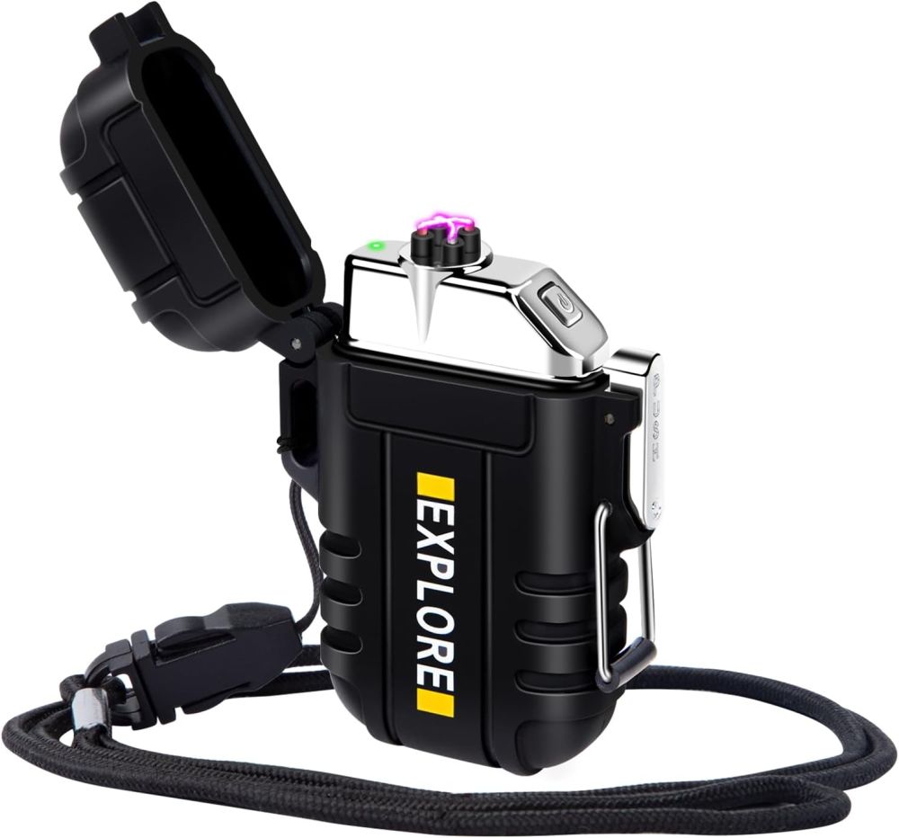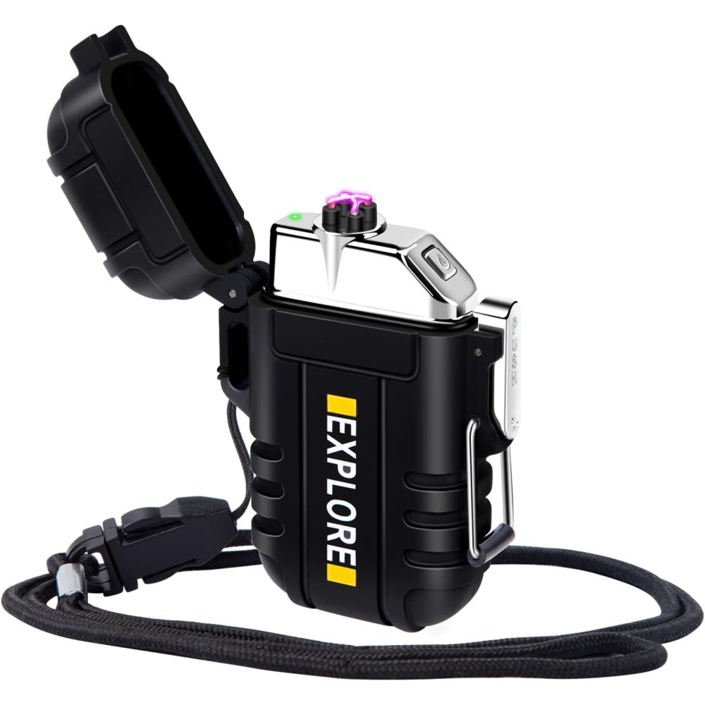 Super smart genopladelig elektrisk lighter. Snoren til produktet passer perfekt til fx. camping, vandreture eller andet i det fri. Det er værd at bemærke designet på denne lighter, da det er muligt at lukke lighteren med en låselukning. Den er vandtæt og har en fuld opladningstid på ca. 2 timer. Lighteren har et flot sort design.