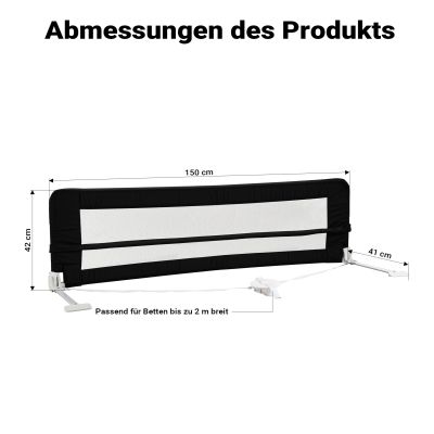 Sengegitteret er en praktisk og sikker løsning, der beskytter dit barn mod at falde ud af sengen under søvnen. Med sine funktionelle mål giver det en bred og pålidelig dækning, som især er velegnet til små børn og babyer. Det sikrer, at dit barn ligger trygt og sikkert hele natten. Designet gør det nemt at bruge i hverdagen, da det hverken kræver værktøj eller kompliceret montering. Det fastgøres enkelt og hurtigt ved sengens kant og kan klappes ned, når barnet skal i eller ud af sengen. Denne funktion gør hverdagen lettere, især når det bruges som faldsikring til mindre børn.