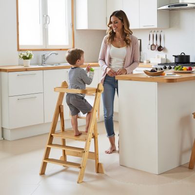 Den solide konstruktion er udstyret med et stabilt sikkerhedsgelænder, som omslutter barnet og minimerer risikoen for at miste balancen. Afrundede kanter øger sikkerheden yderligere og beskytter mod stød og skader. Resultatet er en stabil og pålidelig læringsstol, der lever op til høje krav om børnesikkerhed. Det smarte, klapbare design gør stolen nem at folde sammen og opbevare, når den ikke er i brug. Det er ideelt til mindre hjem eller køkkener, hvor pladsen skal udnyttes optimalt. På trods af den fleksible konstruktion forbliver stolen stabil og sikker i brug og passer perfekt til den moderne familie.