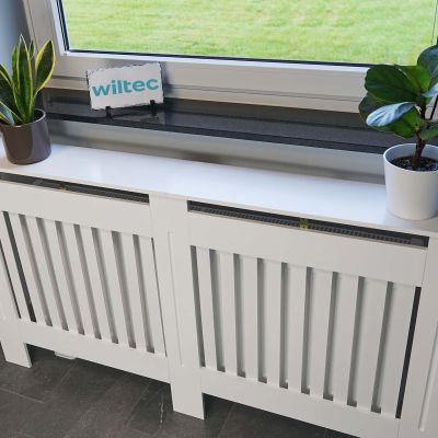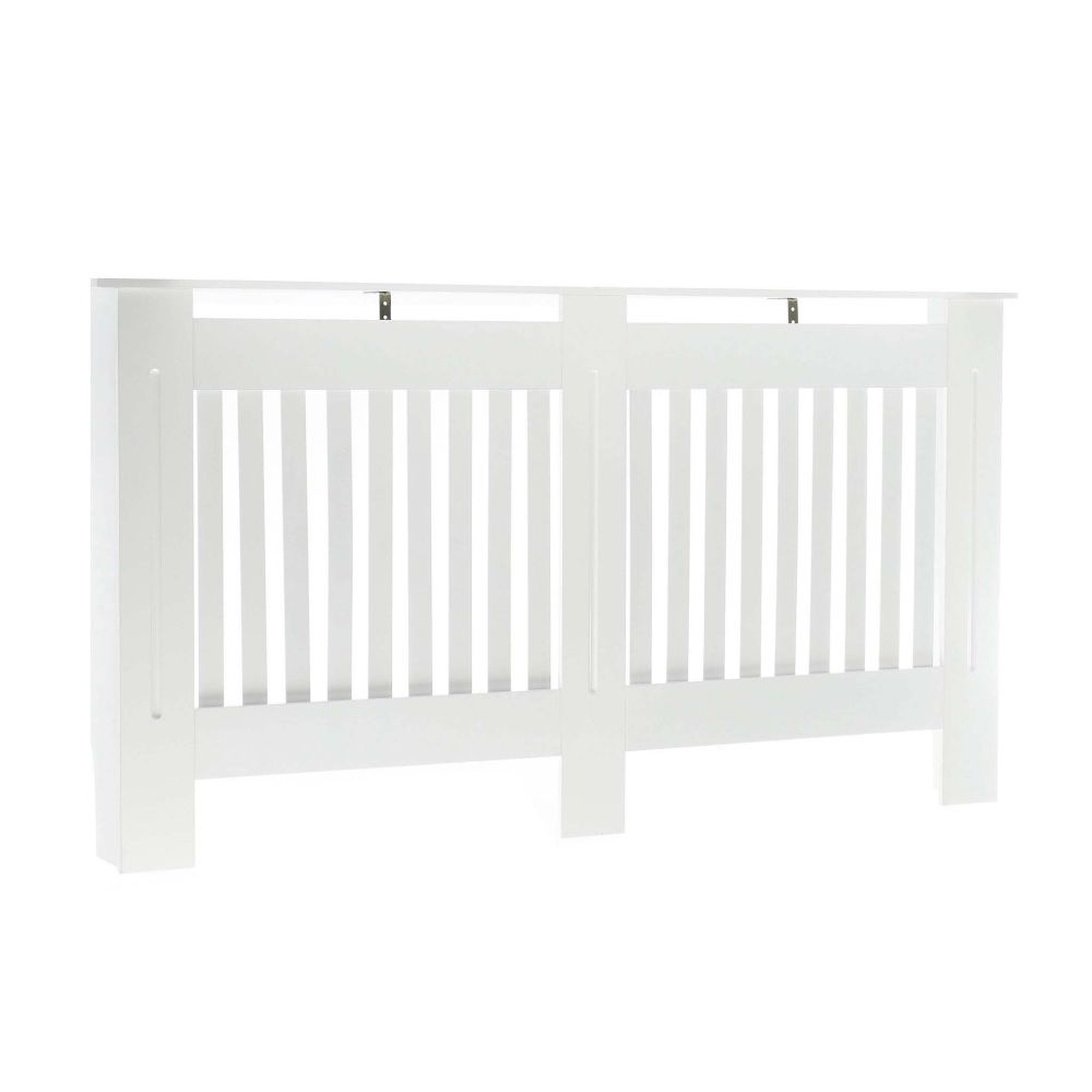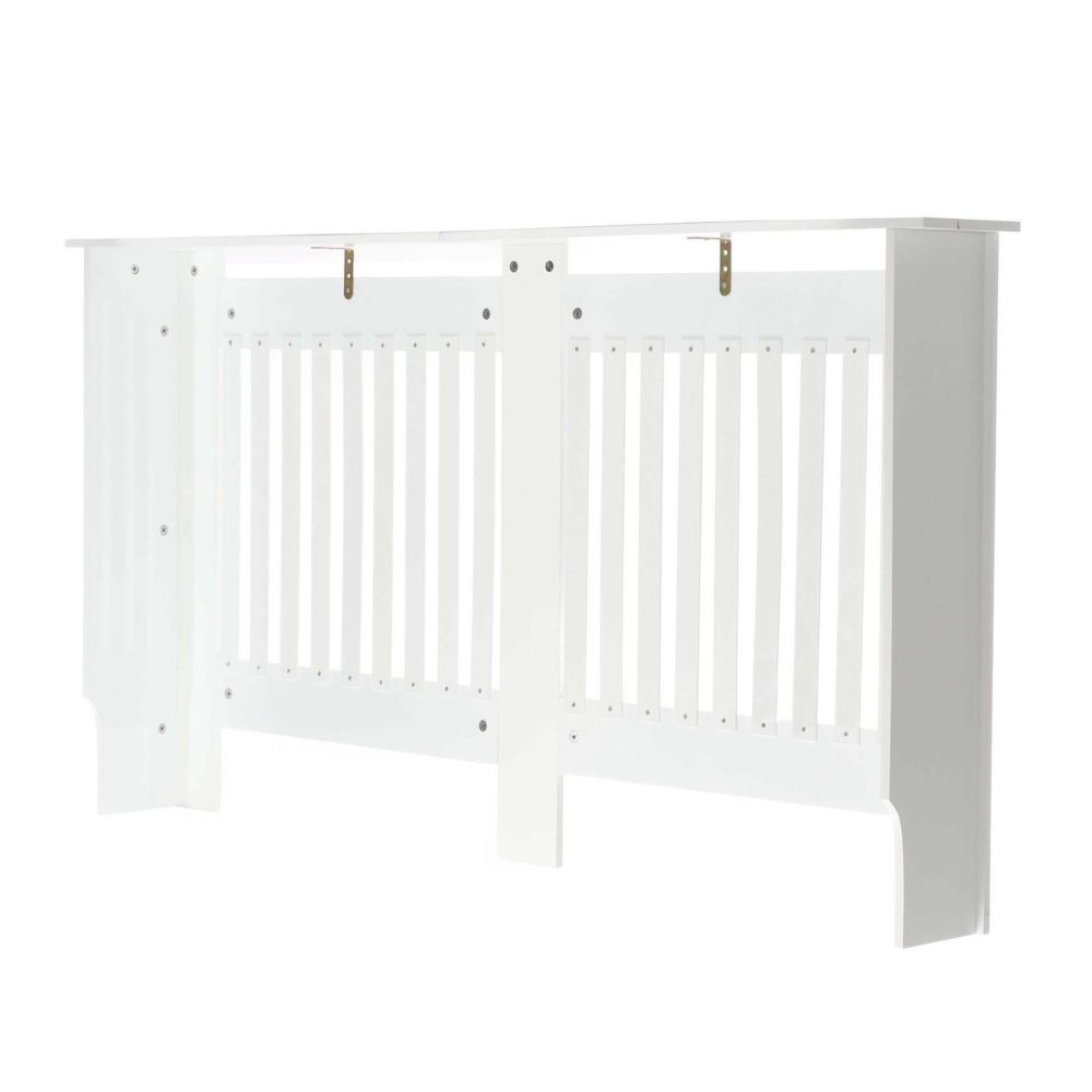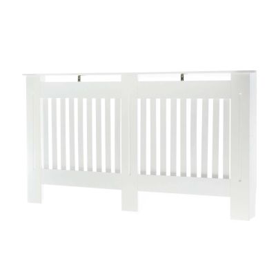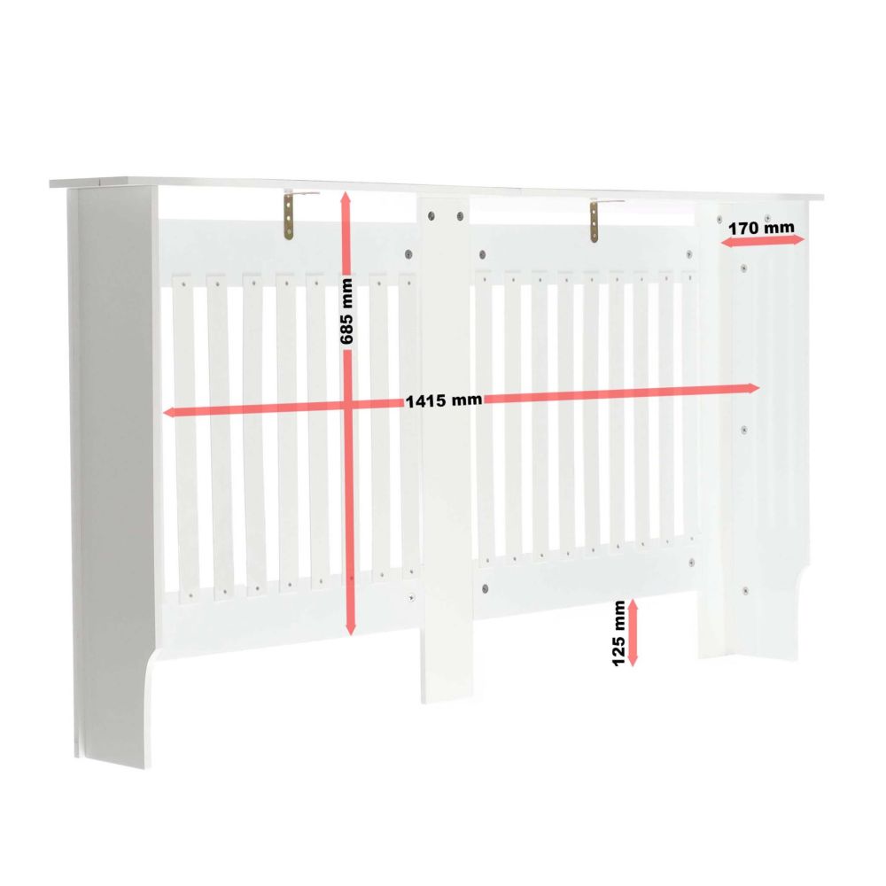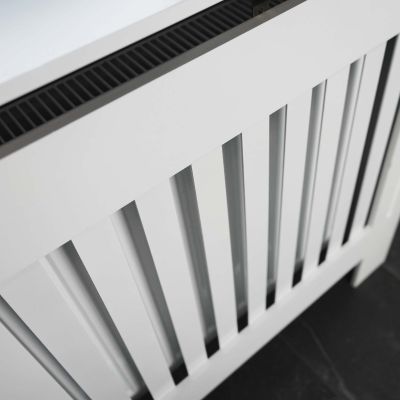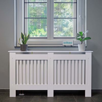 Denne hvide radiatorskjuler kombinerer et stilrent design med praktisk funktionalitet og giver dit hjem et elegant og gennemført udtryk. Det moderne lameldesign i hvid passer ind i enhver boligindretning og skaber en rolig og eksklusiv atmosfære i rummet. Med målene 152x19x82 cm er beklædningen ideel til standardradiatorer og sikrer samtidig, at varmen fortsat kan cirkulere effektivt i rummet. Den er fremstillet i solid 12 mm MDF, hvilket giver en stabil og holdbar konstruktion, der er velegnet til daglig brug. Radiatorbeklædningen øger sikkerheden i hjemmet ved at beskytte både børn og kæledyr mod direkte kontakt med varme overflader.