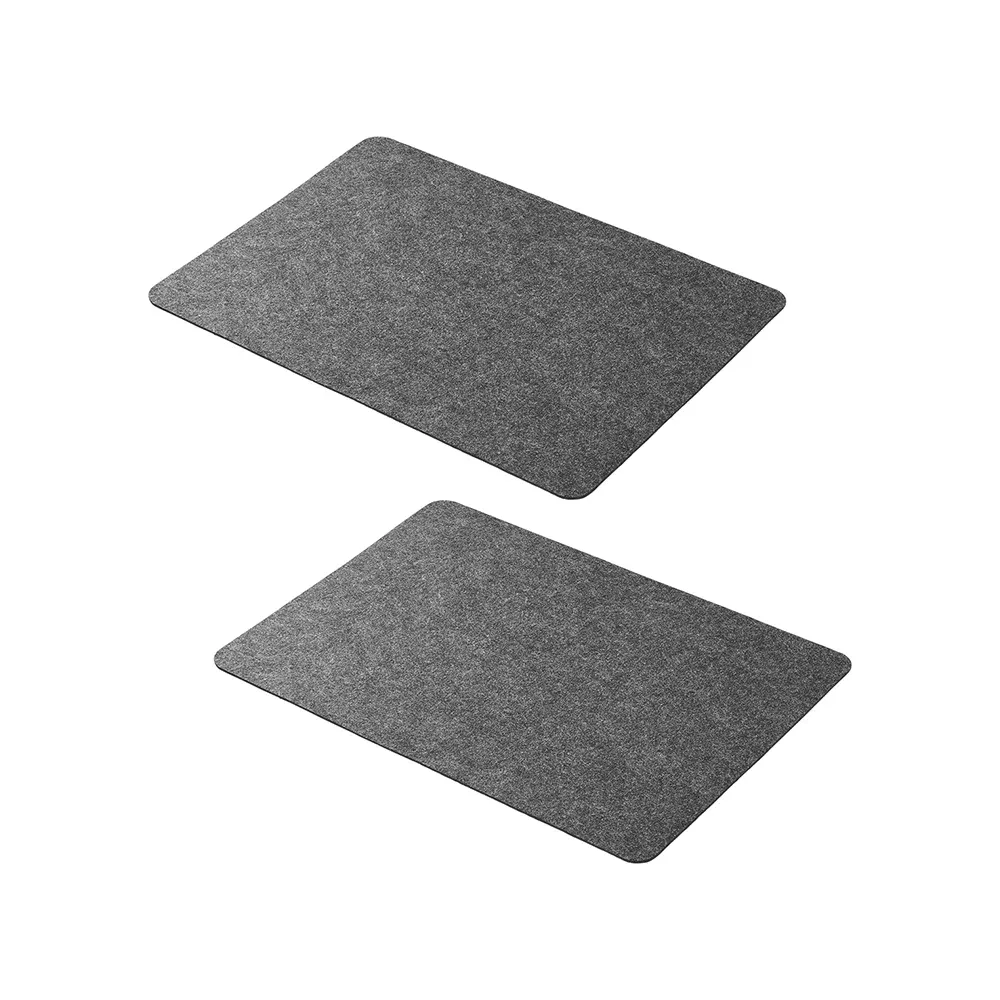 Praktiske og stilrene dækkeservietter i filt, som beskytter bordet mod snavs, pletter og varme under måltidet. De hjælper med at holde bordet pænt og rent og fungerer samtidig som bordskånere til varme gryder og fade. Den skridsikre underside sikrer, at dækkeservietterne bliver liggende stabilt på bordet. Dækkeservietterne er ideelle til både daglig brug og ferier med campingvogn eller camper, hvor funktionalitet og pladsbesparelse er vigtig. Det enkle, grå design passer ind i de fleste køkkener og campingmiljøer.