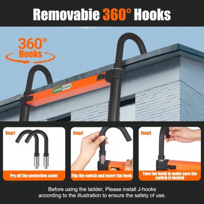 Ved hvert trin låses automatisk, så stigens højde kan justeres efter behov. Trappestigen er fremstillet af aluminiumslegering, som er solid og sikker, rustfri og holdbar og har en bæreevne på maks. 150 kg. Stigen er produceret med sikkerhedskroge i toppen, som nemt kan afmonteres.