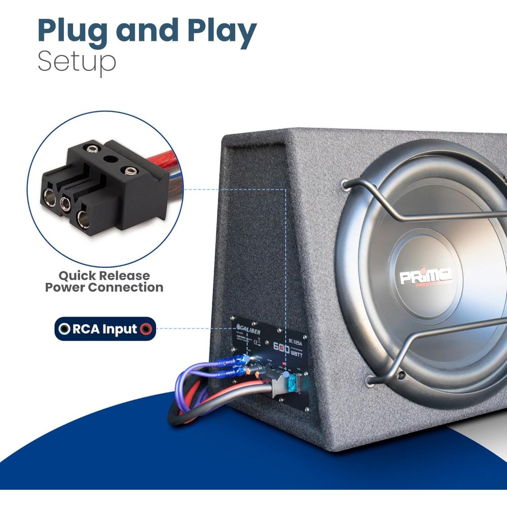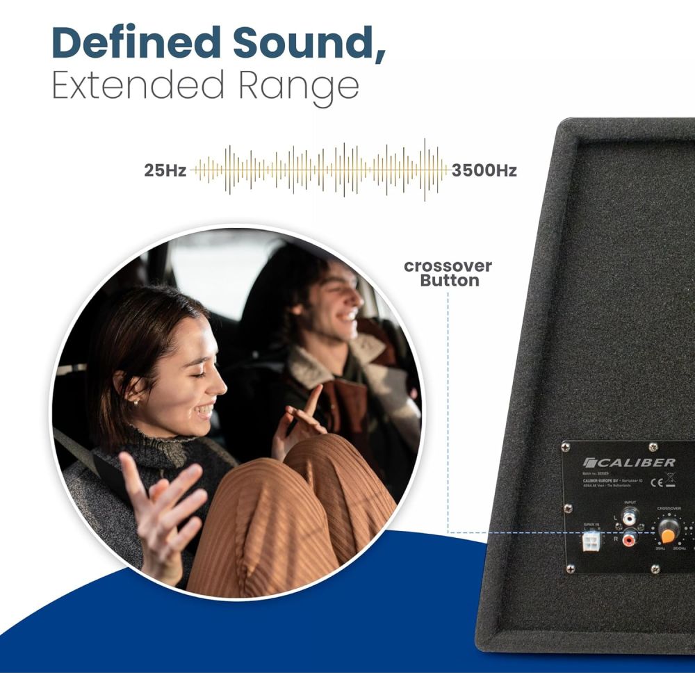 Med Caliber BC112SA subwooferen får du en markant dybere og mere intens lydoplevelse på farten. Subwooferen er nem at placere i bagagerummet, hvor den leverer kraftfulde bastoner, som giver musikken en ekstra dimension. Den integrerede forstærker gør det muligt at tilpasse bassen præcis efter din smag, så du kan nyde dine yndlingssange på den bedst mulige måde. Subwooferen yder 200 watt RMS og kan nå peak-effekt på helt op til 600 watt. Med den indbyggede cross-over-funktion sikres en optimal sammenspilning med bilens øvrige højttalere.