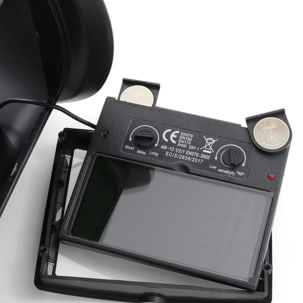 Takket være følsomhedskontrollen kan svejsemasken justeres til det omgivende lys. Det betyder, at mørklægningsfunktionen ikke påvirkes af yderligere lyskilder såsom sollys. Hjelmen har også en forsinkelsesindstilling. Dette får visiret til at lysne med en forsinkelse, efter at svejsningen er afsluttet. Dette forhindrer øjnene i at blive beskadiget af enhver efterglød. Til efterbehandling af svejsningen kan mørklægningsfunktionen slås fra, så du har frit udsyn til slibning mv. Hjelmen tjener som ansigtsbeskyttelse mod flyvende spåner og gnister. Strømforsyningen til den automatiske svejsehjelm er garanteret af solceller af høj kvalitet. Inderhjelmen er justerbar i størrelsen, så den kan tilpasses alle hovedformer. Takket være den polstrede spænde og den lave vægt er komforten meget høj, selv når den bæres i længere perioder. Hjelmen er lavet af ekstremt stabil og slidstærk plast, der kan modstå høj termisk og mekanisk belastning.
