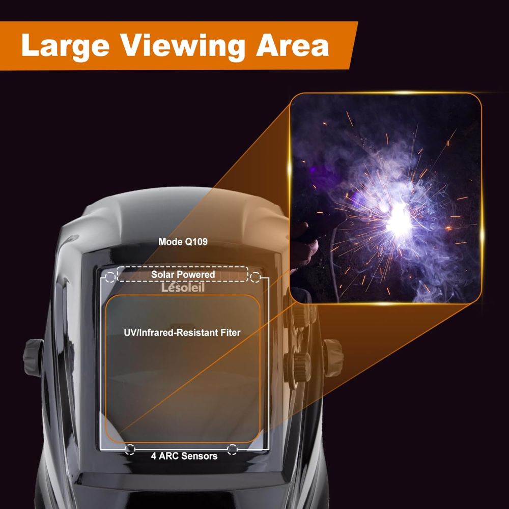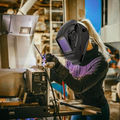 DOKA svejsehjelm professionel automatisk er velegnet til forskellige arbejdsforhold og giver maksimal komfort under svejsning. Den er udstyret med 4 svejsebuesensorer, et visningsvindue på 100 x 63 mm, et dobbelt LCD-display og et udskifteligt Li-ion-batteri med ladeindikator og solpanel. Masken har også en selvtestfunktion, der sikrer optimal sikkerhed. DOKA svejseparaply automatisk svejsehjelm har en ekstern, trinløs justering af dæmpningsniveauet fra DIN 3/4-8/9-13 samt en intern, trinløs følsomhedsjustering. Skiftetiden er 0,1-1 sekund i lys tilstand og 1/25000 sekund i mørk tilstand. Før svejsning skal filteret kontrolleres, og sideregulatoren indstilles til GRIND-positionen.