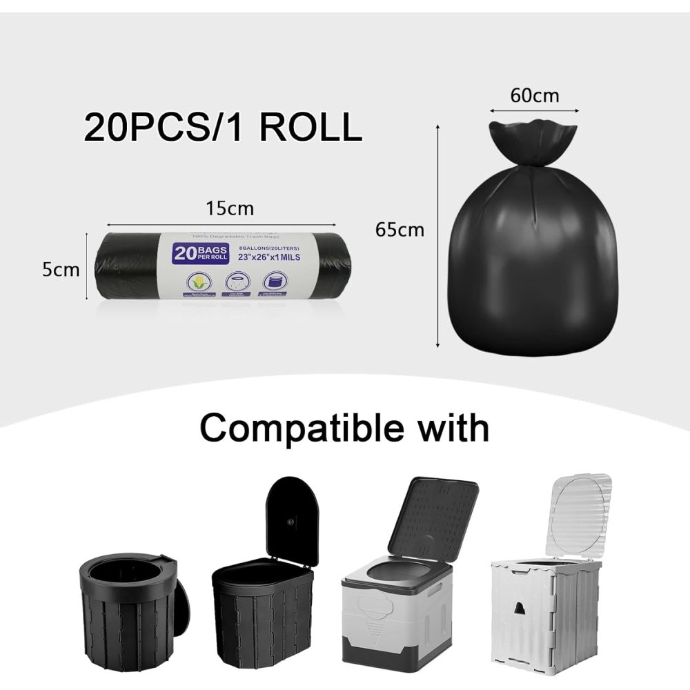 De er fremstillet af biologisk nedbrydelig plantestivelse, som gør dem lette og samtidig miljøvenlige. Når du er på camping, fisketur eller vandretur, kan du nemt grave et hul og bortskaffe posen uden dårlig samvittighed, da materialet nedbrydes naturligt. Poserne er kompatible med de fleste bærbare campingtoiletter og spandetoiletter, hvilket gør dem alsidige og brugervenlige. Det er en enkel, hygiejnisk og bæredygtig løsning, der gør friluftslivet mere komfortabelt.