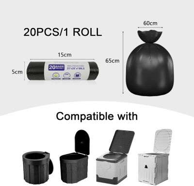 Her får du praktiske toiletposer i en samlet pakke, rullet op i sæt af 20 styk. De måler 60x65 cm, er sorte og uigennemsigtige og rummer hele 30 liter, hvilket gør dem ekstra rummelige og ideelle til daglig brug. Poserne er konstrueret med en forstærket bund i et ottekantet design, som gør dem stabile og modstandsdygtige. Forseglingen i bunden er udført ved høj temperatur, hvilket giver en en tæthed, så de er både vandtætte og lugtafvisende og dermed beskytter mod lækager og ubehagelige lugte.