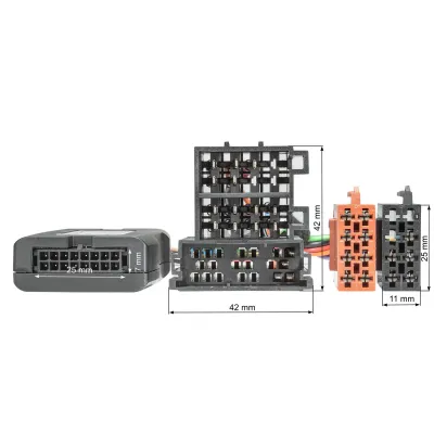 Rat interface stik til Citroen, Fiat og Peugeot. Ved brug af et interface stik bliver det muligt, at bibeholde bilens oprindelige ratbetjeningsfunktioner, ved udskiftning af bilens orignale radio til en anden. Interface stikket passer kun, såfremt at bilen har standard ISO-forbindelse til strøm og højttaler. Du kan se vejledning under fanen ''downloads''.