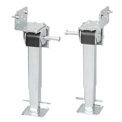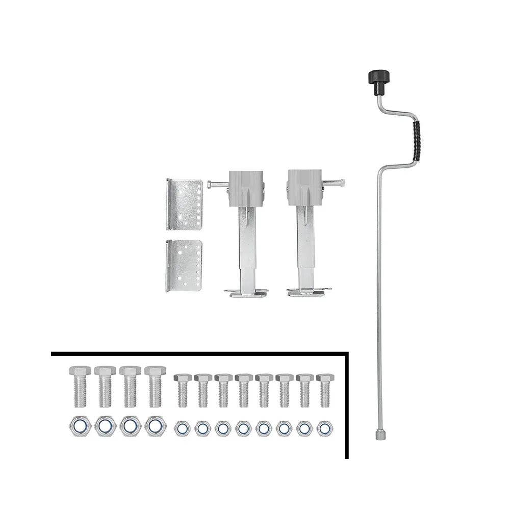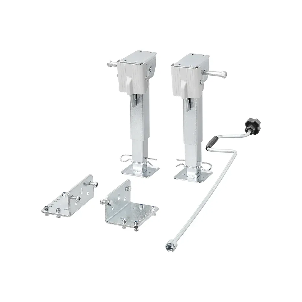 Få ekstra stabilitet og komfort på dine rejser med dette sæt justerbare støtteben til autocamper. Støttebenene sikrer, at køretøjet står stabilt, så du undgår generende gyngen fra vind eller bevægelse inde i autocamperen. Fremstillet i slidstærkt Q235 stål kombineret med PA og zinklegering, som giver høj styrke og lang levetid. Støttebenene er lette at betjene med det medfølgende drejebare håndsving. Der medfølger 2x justerbare støtteben med håndsving, 1x drejbar håndsving, ca. 850 mm (topnøglestørrelse 17 mm) og monteringsmateriale (bolte og møtrikker).