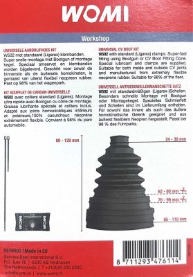 Drivaksel manchet kit Universal - Womi W502 CV Boot - Gummimanchet inkl. smørefedt & spændebånd