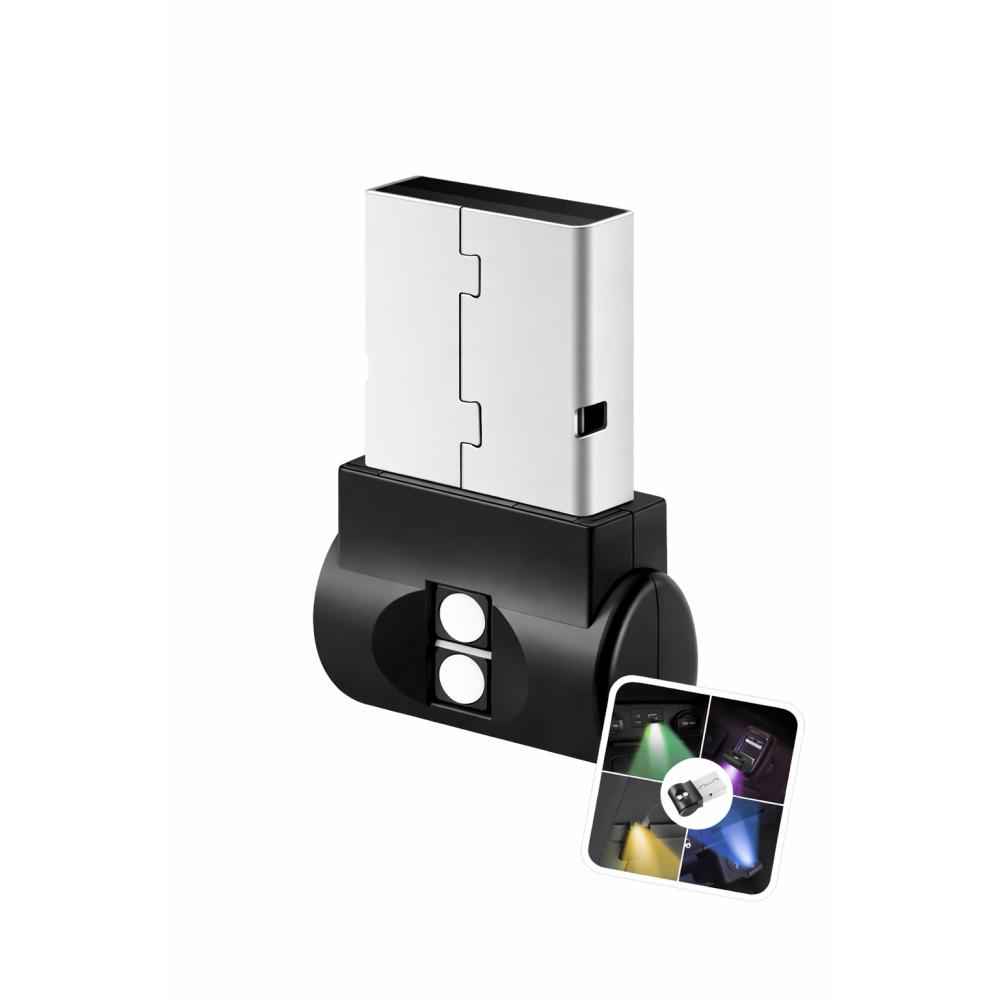 Med 7 stemningsfulde RGB-farver kan du nemt skifte mellem farver med et klik, aktivere en blød “åndende” lyseffekt med et dobbeltklik eller justere lysstyrken ved at holde knappen nede. Lampen har et ekstremt lavt strømforbrug på kun 18 mA, hvilket gør den både energieffektiv og miljøvenlig. Perfekt til at skabe en hyggelig og moderne atmosfære i bilen - men også oplagt til hjemmet, kontoret eller hvor end du ønsker diskret og stilfuld stemningsbelysning.