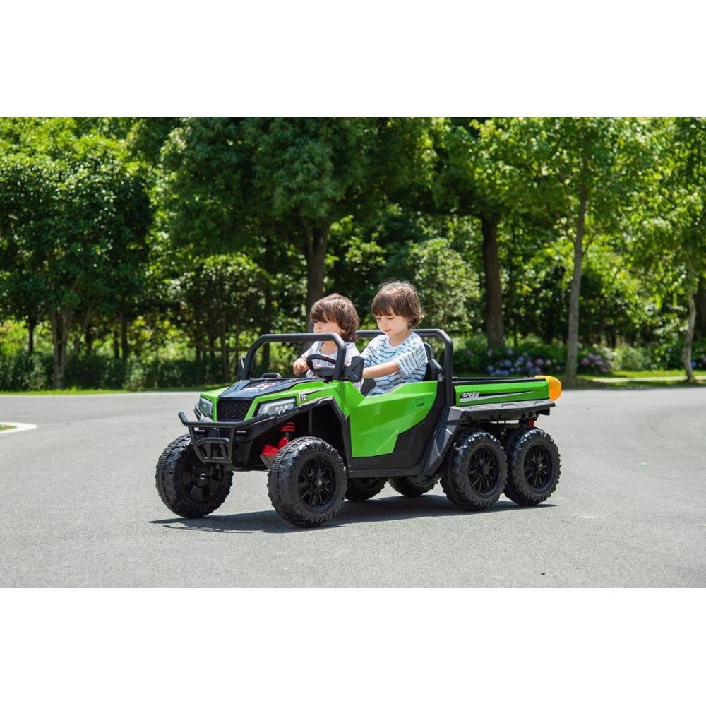 Med plads til to børn kan legen deles med en ven eller søskende, mens den elektriske tipfunktion gør det ekstra sjovt at læsse og aflæsse sand, legetøj eller andre skatte. De kraftige motorer og stabile hjul sikrer en god køreoplevelse på forskellige underlag. Mange lignende modeller er netop populære for deres kraftige motorer, tipfunktion og mulighed for forældrekontrol