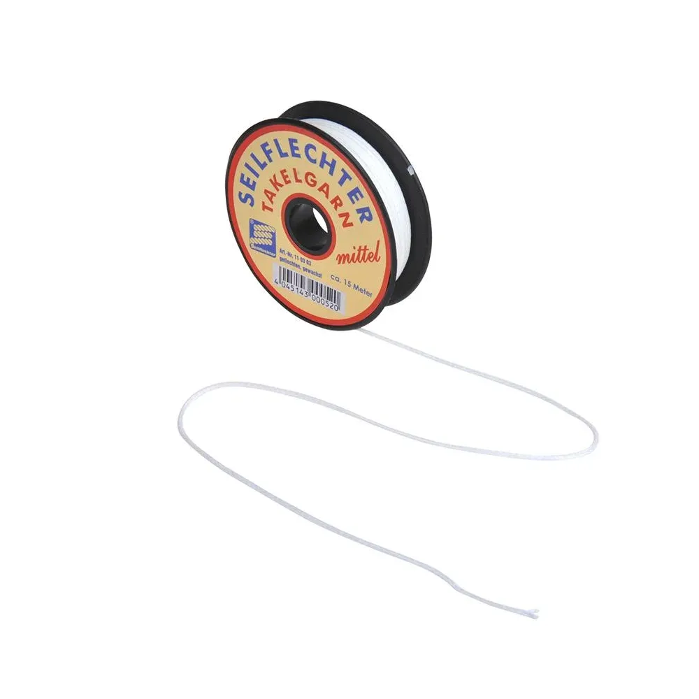 Giv dit tovværk en professionel finish med Seilflechter takelgarn. Dette medium, tykke og voksede garn er ideelt til takling af rebender, så de ikke flosser, samt til fremstilling af stærke og holdbare øjer. Med en længde på ca. 15 meter får du rigeligt garn til flere projekter – perfekt til sejlads, camping, outdoor og gør-det-selv arbejde, hvor reparation og forstærkning af tovværk er nødvendigt. Den voksede overflade gør garnet både slidstærkt og let at arbejde med, så du opnår en stram og sikker afslutning hver gang.