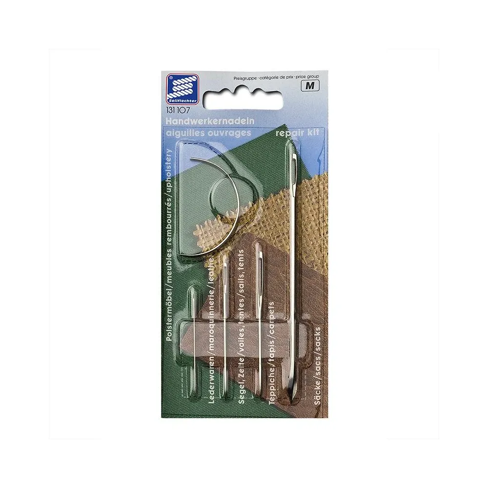 Dette praktiske reparationssæt med 4 forskellige specialnåle er ideelt til både hobby og professionelt brug. Sættet gør det nemt at udføre reparationer i materialer, som kræver ekstra styrke og specielle nåletyper – f.eks. sejl, telte, lædervarer, polstrede møbler, tæpper og sække. De medfølgende nåle har forskellige former og størrelser, så du altid har den rette nål til den konkrete opgave. Perfekt til gør-det-selv reparationer derhjemme, i værkstedet eller på båden.