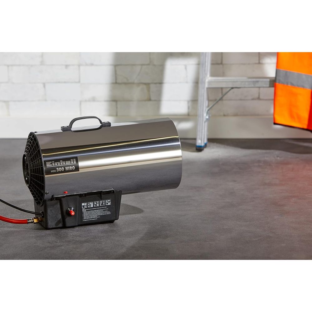 Forbrændingsprocessen foregår i et åbent forbrændingskammer, hvor en ventilator trækker luft ind, opvarmer den og sender den ud i rummet – helt uden behov for skorsten. Det eneste krav er tilstrækkelig ventilation for at sikre optimal forbrænding. Varmeren er både sikker, drift sikker og let at betjene - tilslut blot en gasflaske, og enheden er klar til brug. Den producerer ren og varm luft og egner sig perfekt til brug i byggerier, lagerhaller, landbrug, sommerhuse og andre steder, hvor effektiv opvarmning er nødvendig.
