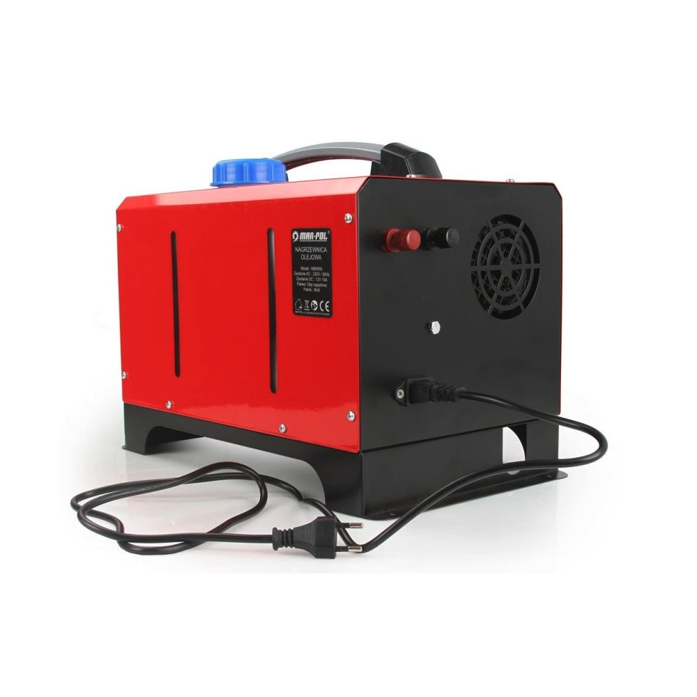Varmekanonen kan tilsluttes både via elnettet (AC 230V/50Hz) til brug i rum, garager og lagerhaller eller via cigarettænderstik og 12V batteri (DC 12V 15A), hvilket gør den velegnet til køretøjer og campingvogne. Strømkabler til 12V er ikke inkluderet. Enheden leveres med fjernbetjening, så man kan tænde, slukke og regulere varmeeffekten på afstand. Fjernbetjeningen kan fastgøres til en snor og er udstyret med en sikkerhedsfunktion, der forhindrer utilsigtet tryk på knapperne.