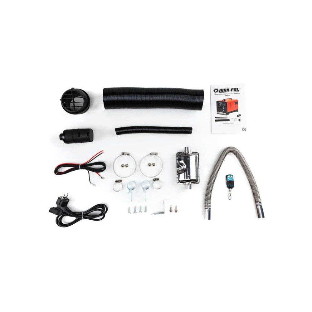 For at øge driftssikkerheden er varmeren udstyret med luftfilter ved indsugningen, som beskytter mod støv og snavs, reducerer risikoen for skader og samtidig dæmper støjniveauet. Den medfølgende lyddæmper mindsker yderligere støjen fra forbrændingsprocessen. Batteri til fjernbetjeningen (type 27A 12V) medfølger ikke og skal købes separat.