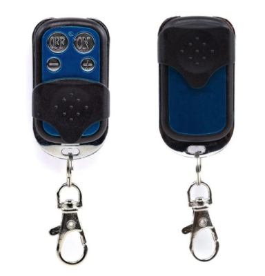 Fjernbetjening med sikkerhedsfunktion og mulighed for fastgørelse til snor