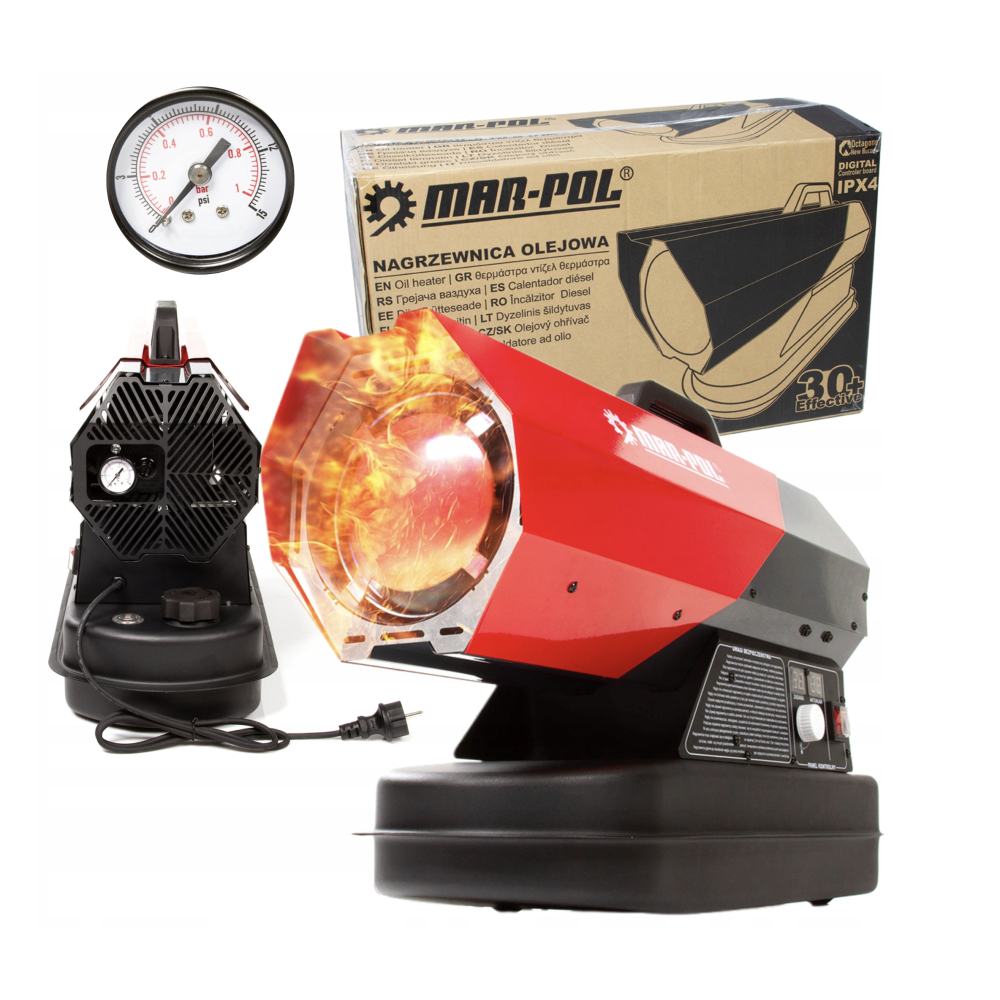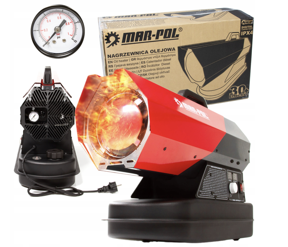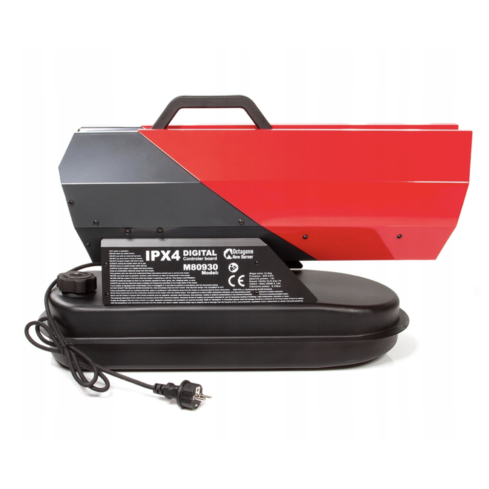 Den innovative, oktagonformede varmekanon leverer en imponerende varmeeffekt på 30 kW og er ideel til hurtig og effektiv opvarmning af store rum som værksteder, garager, lagerhaller, landbrugsejendomme eller sommerhuse. Den kraftige varmeblæser kombinerer høj ydeevne med lavt brændstofforbrug takket være sit højtryks brændstofsystem, som sikrer maksimal effektivitet sammenlignet med traditionelle lavtryksmodeller. Den åbne forbrændingskammer giver en kraftig varm luftstrøm med en kapacitet på 550 m³ i timen, hvilket gør det muligt at opnå høje temperaturer på kort tid – perfekt både til opvarmning og tørring af materialer. Den oktagonale form reducerer støjniveauet, mens den solide metalramme og det rustfri varmeelement sikrer lang levetid og høj driftssikkerhed.