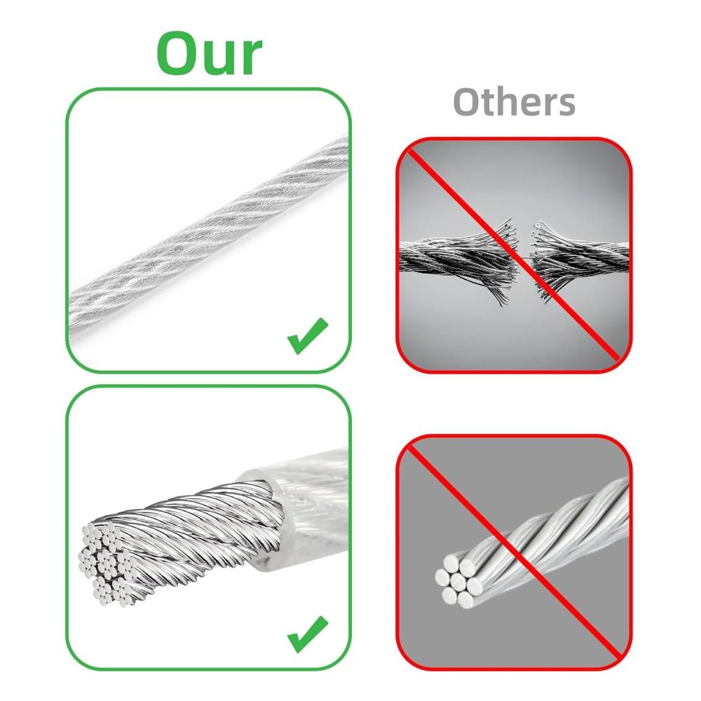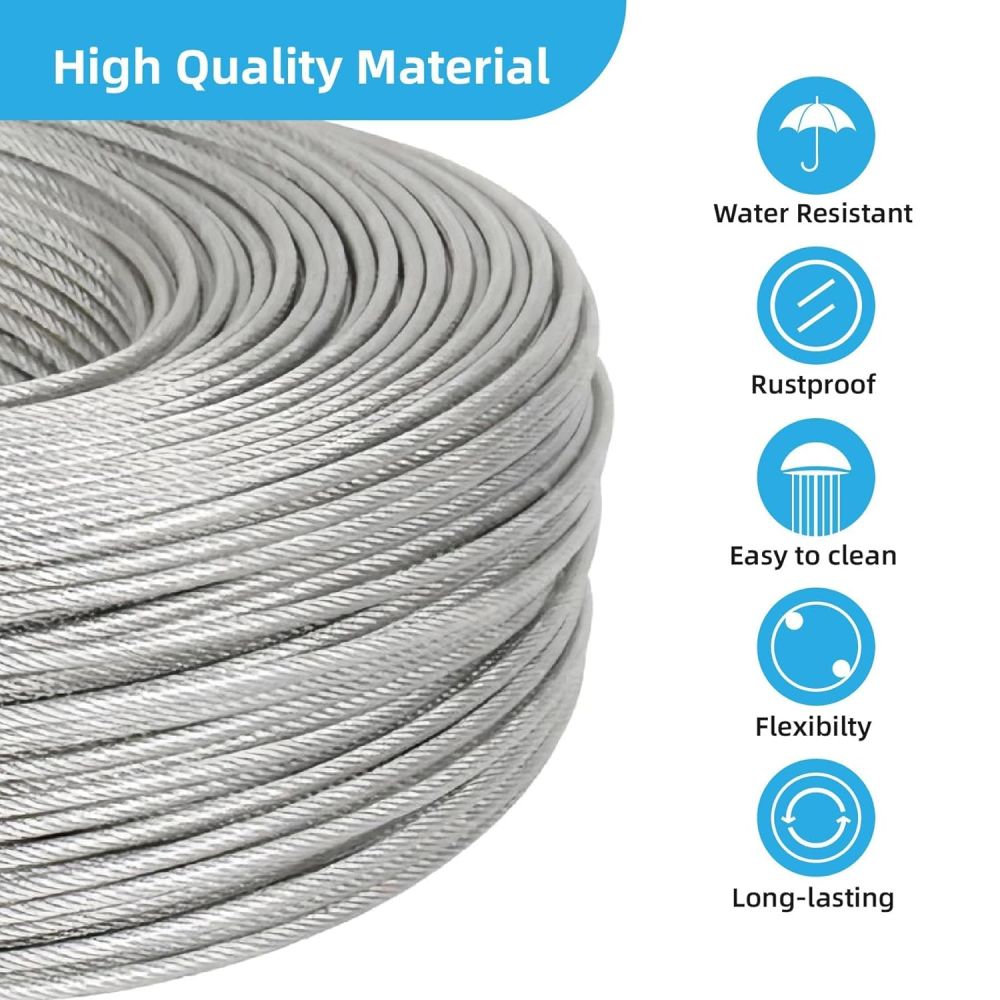 Denne alsidige og holdbare stålwire er fremstillet af 304 rustfrit stål med en 7x7 flettet struktur, hvilket giver høj styrke og fleksibilitet. Wiren er PVC-belagt, hvilket gør den vandafvisende, isoleret og modstandsdygtig over for korrosion – ideel til både indendørs og udendørs brug. Perfekt til havearbejde, terrassedekoration, ophæng, gør-det-selv-projekter og meget mere. Leveres med 20 aluminiums-klemmer, så du nemt kan fastgøre eller samle wiren efter behov.