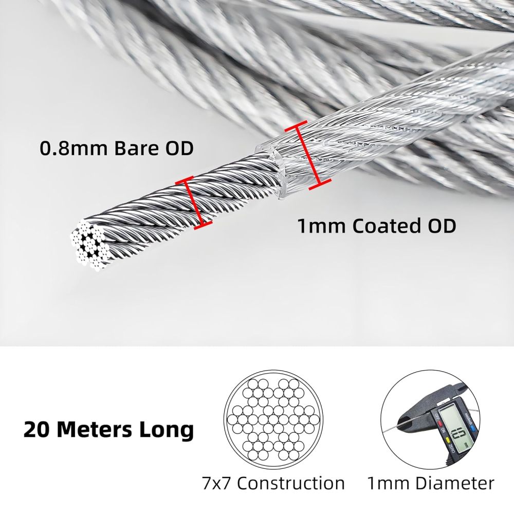 Stålwire 20 meter - Rustfrit stål - 1 mm tykkelse