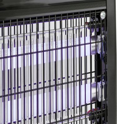 Enheden er udstyret med to energieffektive LED-rør på hver 6W, som sikrer en effektiv tiltrækning af insekter. Med en rækkevidde på op til 80 m² er den velegnet til både mindre og mellemstore områder. Det kraftige højspændingsgitter kan afgive en udladning svarende til op til 2500V ved berøring, hvilket betyder, at myg, fluer og natsværmere ikke har en chance. Den praktiske konstruktion gør den nem at vedligeholde i hverdagen. En aftagelig bakke i bunden opsamler de insekter, der er blevet fjernet, så du hurtigt og nemt kan tømme og rengøre enheden. Det sikrer en hygiejnisk og problemfri brug sæsonen igennem.