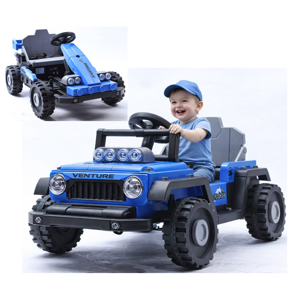 Giv dit barn en helt unik legeoplevelse med denne innovative 24V Transformers elbil! Her får du ikke bare én elbil – men to i én. Bilen kan nemlig bygges om fra en sej offroad jeep til en lynhurtig racerbilsstil, hvilket gør legen endnu mere kreativ og spændende.