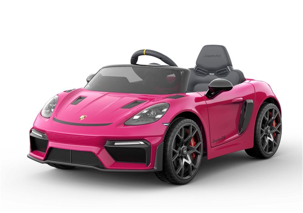 Elbil til børn - Porsche Spyder 718 RS Lyserød - Med fjernbetjening, lys, lyd & musik