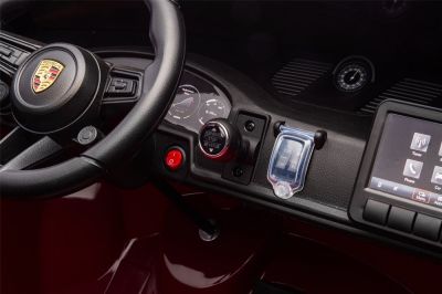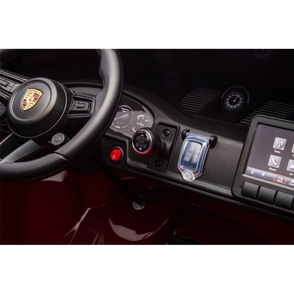 Den rummelige kabine med lædersæde giver høj komfort, og de realistiske detaljer som LED-lys, musik og åbne døre fuldender oplevelsen. Bilen kan styres af barnet selv eller via den medfølgende 2.4 GHz fjernbetjening, så forældre altid har fuld kontrol.
