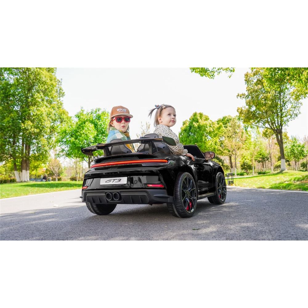 Giv dit barn – eller to – den ultimative køreoplevelse med denne eksklusive Porsche Spyder 911 GT3 elbil. Med sit sporty design og plads til to børn er denne model perfekt til små racerkørere, der elsker fart, luksus og sjov.