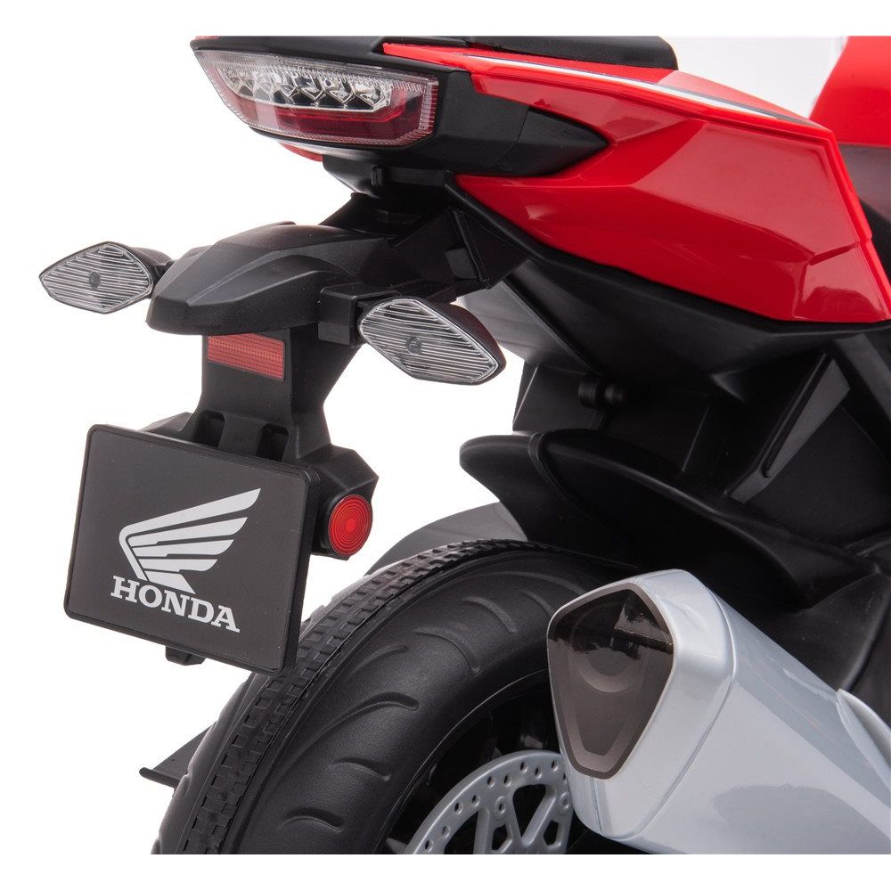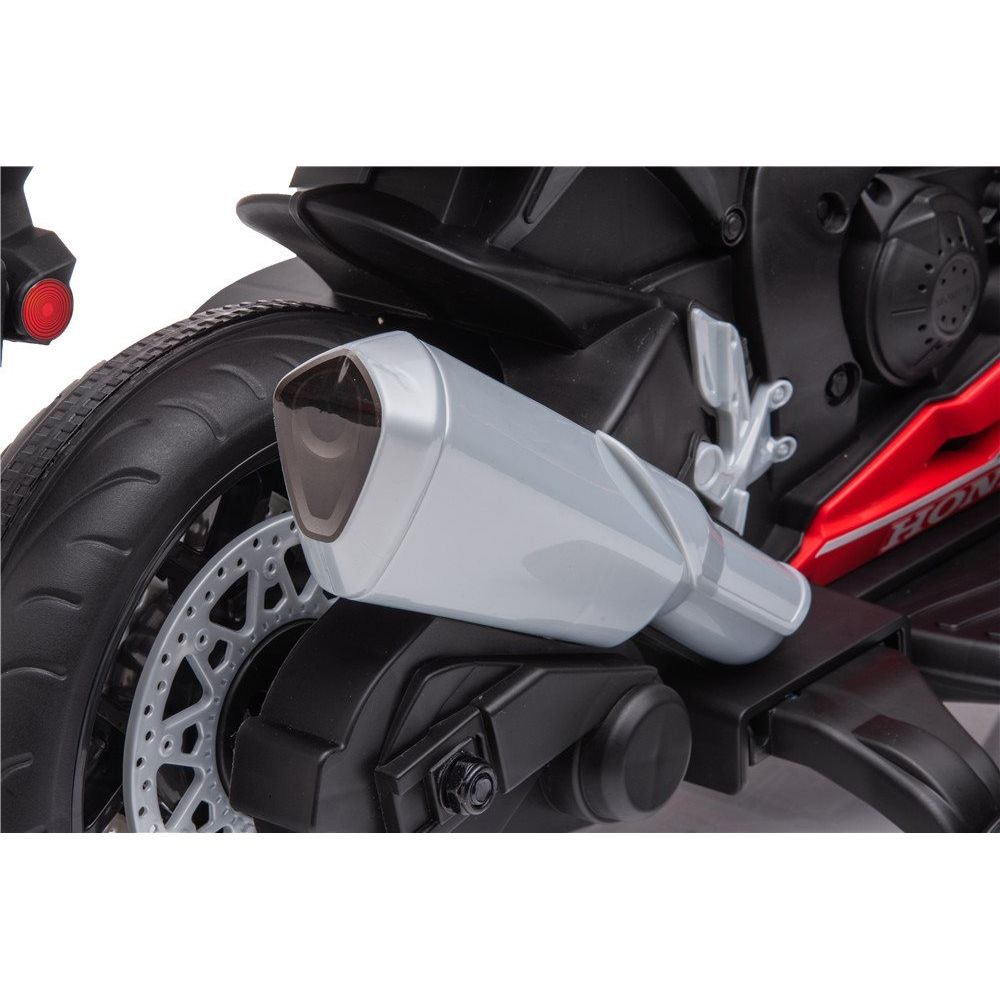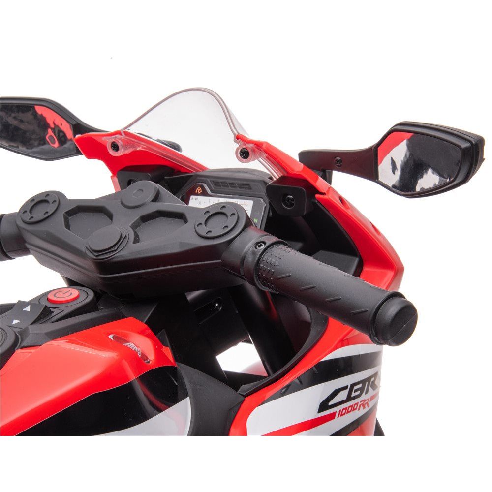 Med sit sporty design, skarpe linjer og autentiske detaljer ligner denne el-motorcykel en miniudgave af den rigtige Honda CBR1000R. Den er ideel til børn, der elsker fart og motorcykler, og som ønsker en sjov og sikker køreoplevelse.