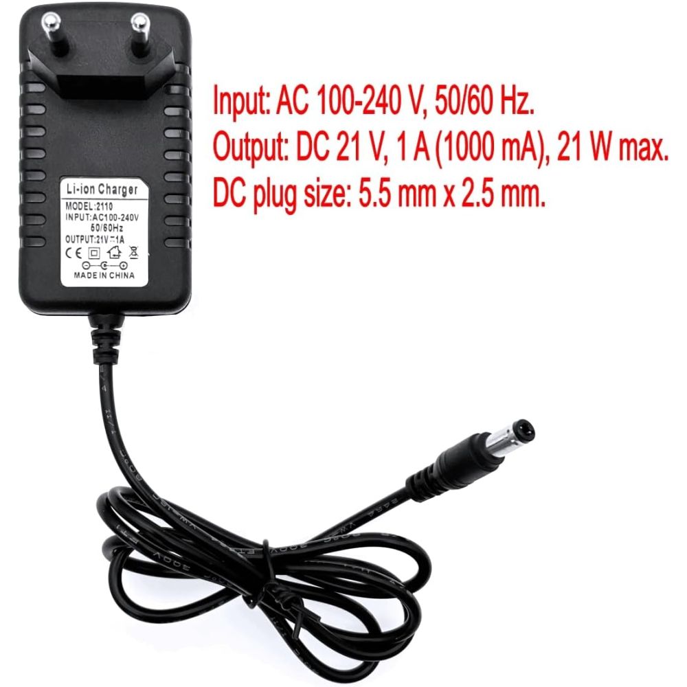 Praktisk og pålidelig 21V AC-DC strømforsyningsadapter/omformer, der er velegnet til en lang række elektroniske apparater i hjemmet. Så som vores M5 M90139 højtryksrenser. Adapteren leverer en stabil udgang på 21V / 1A (maks. 21W) og understøtter universel indgangsspænding på 100–240V, hvilket gør den kompatibel med almindelige strømnet.