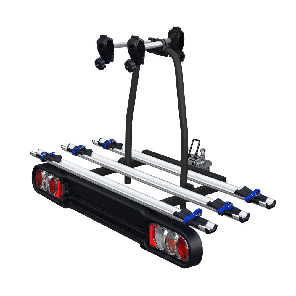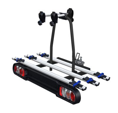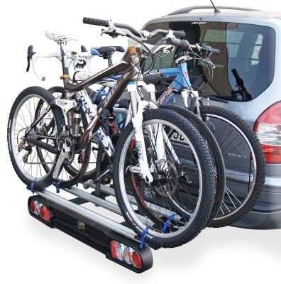 Cykelholderen kan monteres på bilen så du har mulighed for at transportere 3 cykler. Selve basen er godkendt til at må laste 49 kg og har en egenvægt på ca. 15,9 kg. Benyt cykelholderens håndbetjente tilt-funktion, for let adgang til bagagerummet. Cykelholderen skal samles før brug. Husk at når du bruger basen skal du bruge en 3. nummerplade.