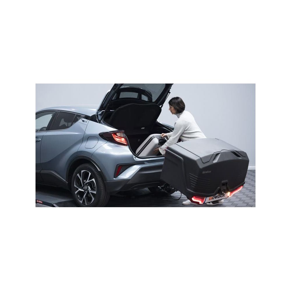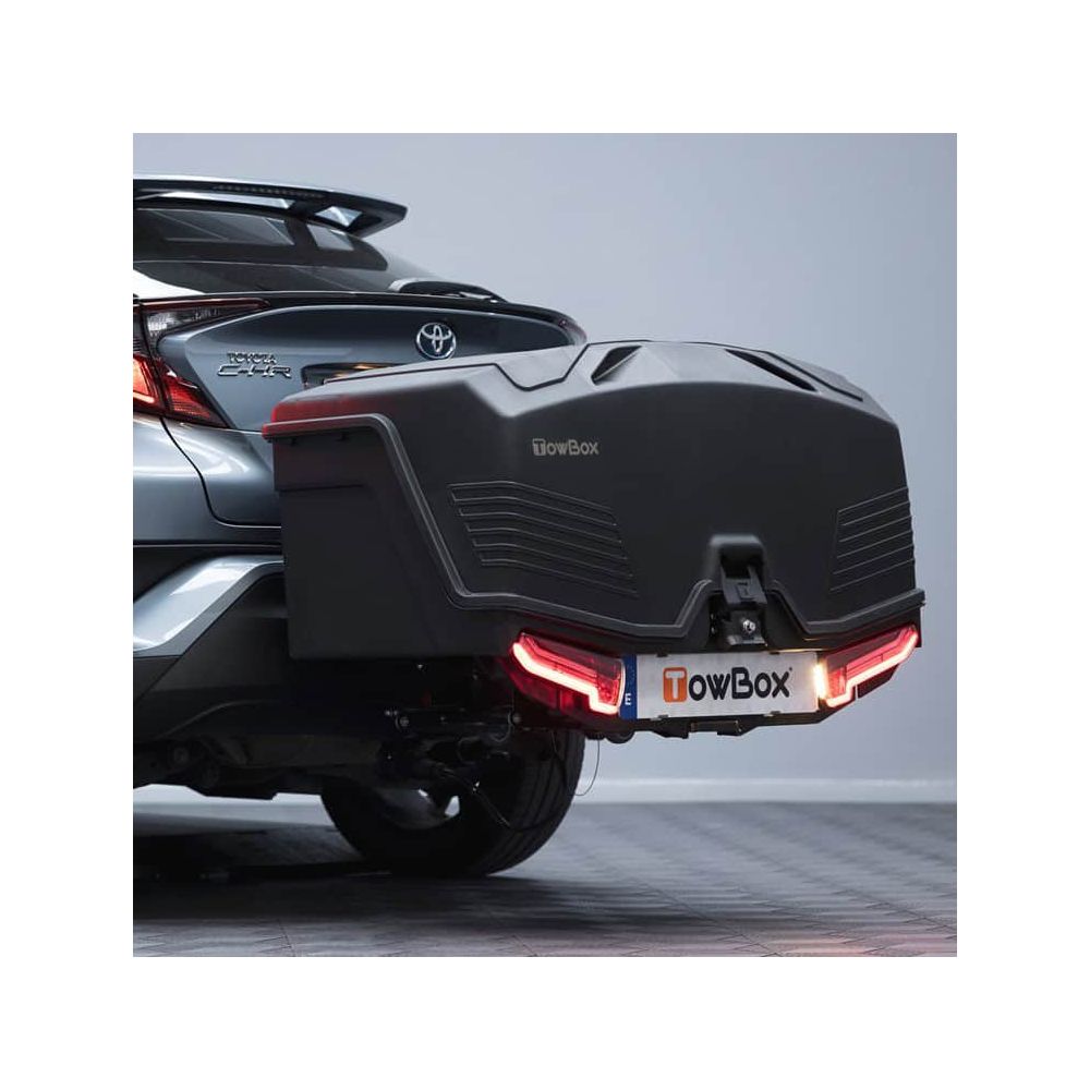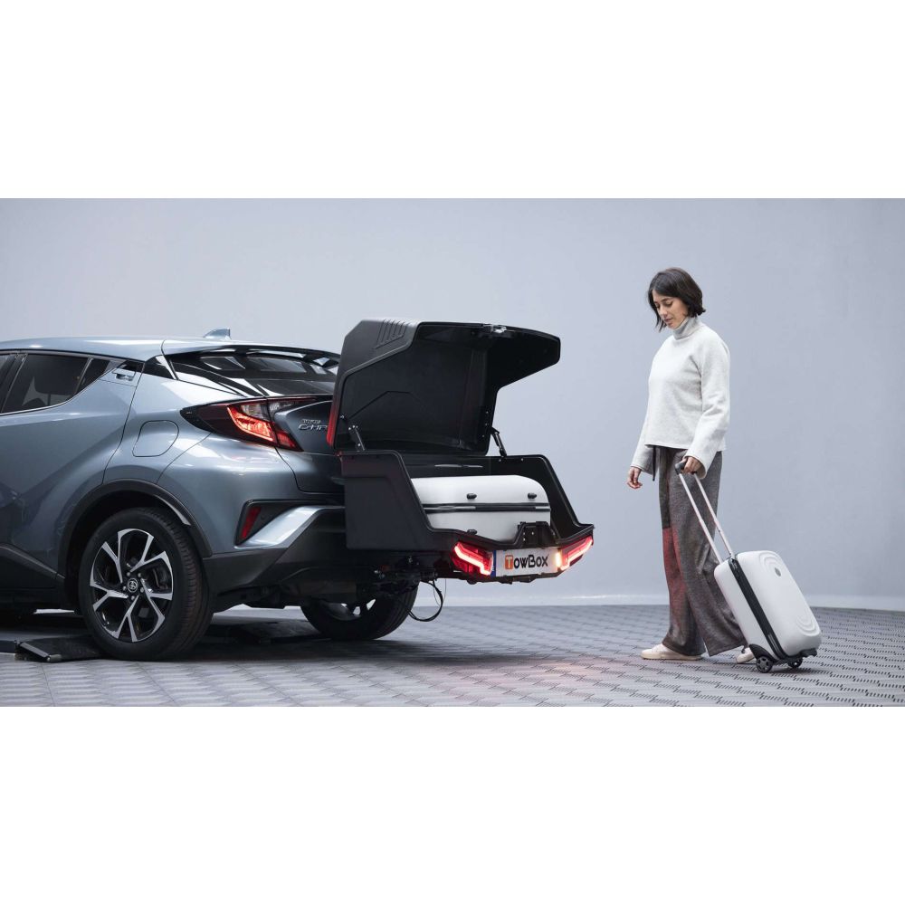 Den nye TowBox Alpha bagageboks er den hidtil mest kompakte og lette model fra TowBox. Ved hjælp af en innovativ sprøjtestøbningsteknologi anvendes der mindre plastik, uden at styrken kompromitteres. Det gør boksen mere bæredygtig og giver samtidig en lavere egenvægt, som muliggør en højere lastekapacitet. TowBox Alpha kan laste helt op til 58 kg, forudsat at bilens tilladte kugletryk tillader en samlet belastning på op til 86 kg. Den lave vægt betyder ganske enkelt mere plads til bagage.