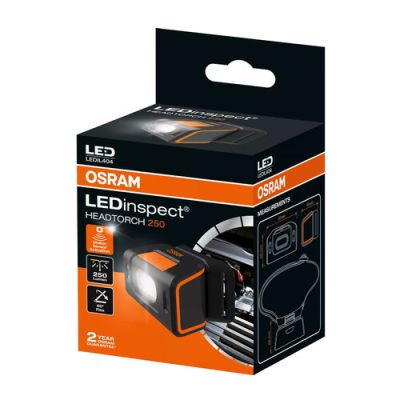 OSRAM LEDinspect HEADTORCH250 er en kraftig og brugervenlig pandelampe, der egner sig til både professionelt brug og hverdagens små opgaver. Den leverer to lysstyrker med op til 250 lumen i høj tilstand og 140 lumen i lav tilstand, så du altid har det rette lys til rådighed. En smart bevægelsessensor gør det muligt at tænde og slukke lampen med en simpel håndbevægelse, hvilket er ideelt når du arbejder med begge hænder. Lampen kan vippes op til 60 grader, så du let kan justere lysretningen efter behov.